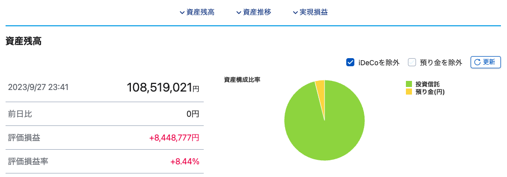 以下は、1億達成時の投資資産残高です。